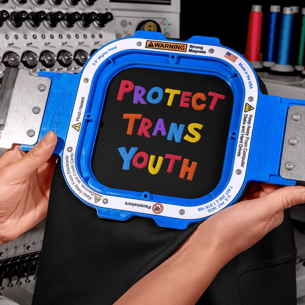 PROTECT TRANS YOUTH - Embroidered Hoodie (multi coloured)